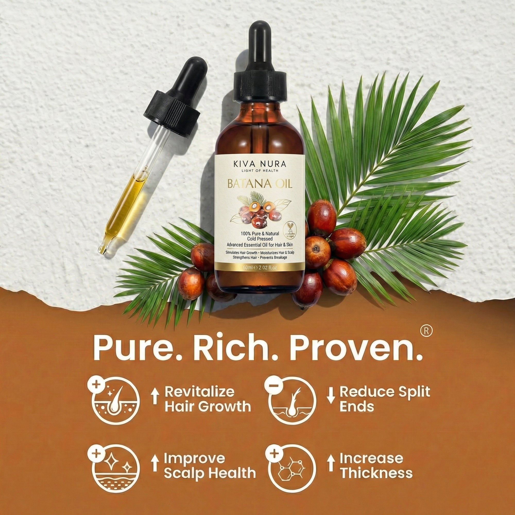 Unlock the power of Batana oil the appearance of thicker-looking hair. Supports hair strength and fullness.